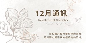 - 在充滿盼望的聖誕節,為各地教會的佈道活動仰望主,求主預備人心,讓人們因一首詩歌、一句見證就遇見主,經歷主的慈愛與恩典。