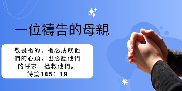 今天的世界變幻莫測,正確的價值觀在分崩離析,許多歪風謬見不斷湧現,母親要引領孩子走在正途上,實在不容易。聖經中有一位很懂得禱告的母親,常為兒子禱告,堪為我們的典範,她名叫哈拿。
